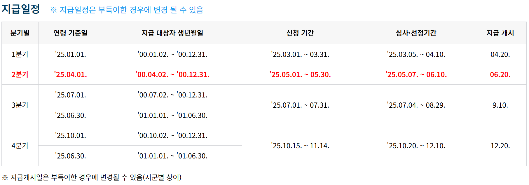 📌 분기별 신청기간 내에 신청하지 않으면 해당 분기 지급은 불가능해요. 꼭 기간 체크하세요!