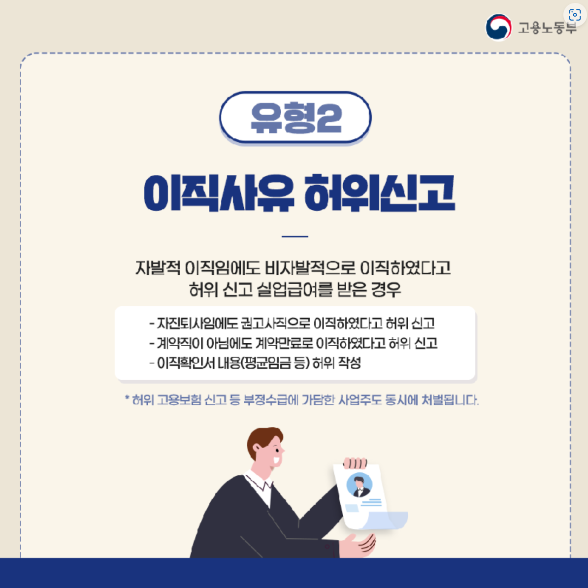실업급여 부정수급은 반드시 적발 됩니다. 그러니 아래 유형별 상황을 확인하시기 바랍니다.